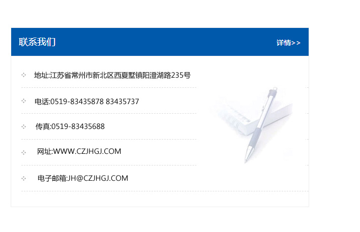地址:常州市新北區友邦商務大廈1幢16、17層  電話:0519-85101652  傳真:0519-85112595  郵編:213022  網址:www_cz-jiayue_cn.guangyudz.com  郵箱:xiajifengaa@163.com